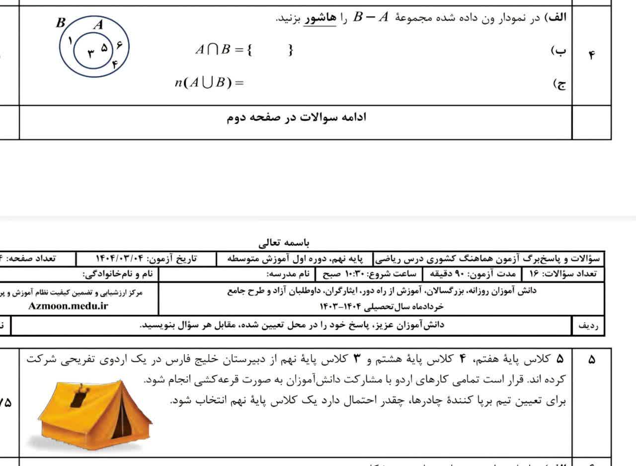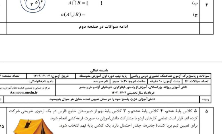 مساله غیرت ملی وسط مسائل ریاضی نهمی ها اشکذری