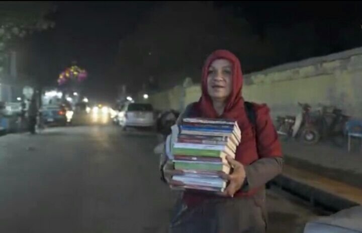 این زن هر روز عصر کتاب زیر بغل میزند و بدون همراه مرد در خیابانهای کابل به راه میافتد و با وجود تمام سختیها کتاب می فروشد.