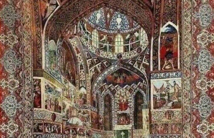 فرش سهبعدی قرن نوزدهم، بافتهشده در اصفهان که در کلیسای ارامنه جلفا نگهداری می شود.