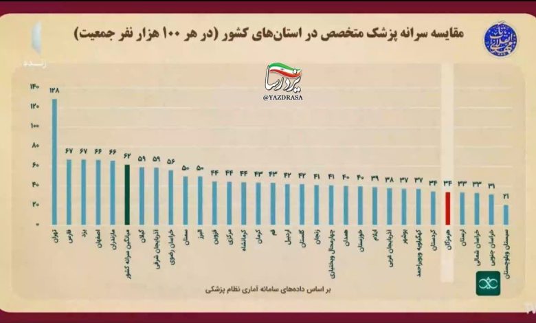 یزد رتبه دوم پزشک متخصص در کشور را دارد